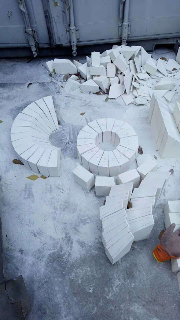 4、 耐火材料的砌筑一般順序為先砌簡體、再砌拱頂、后砌錐底和渣口部分,以防止在砌筑簡體或拱頂磚時發(fā)生掉落,從而砸壞錐底或渣口耐火磚。
