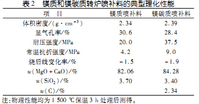 表2:鎂質和鎂碳質轉爐噴補料的典型理化性能