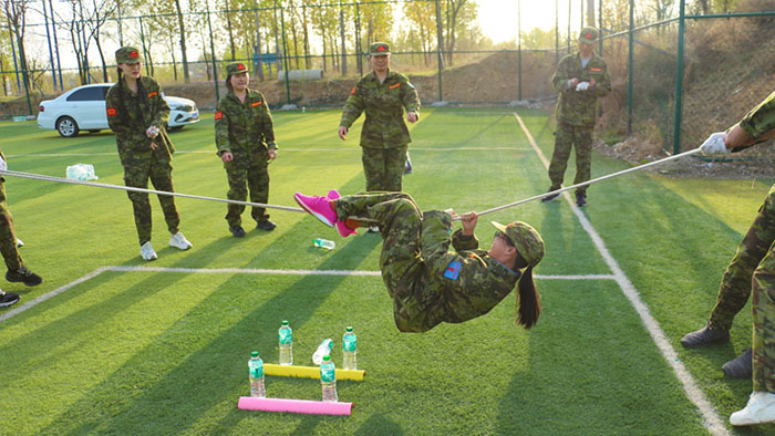 在【雷區取水】項目里,大家真正領略到團隊協作的重要性。在這個項目中,要求每個團隊在不接觸地面的條件下,力爭用更短的時間取得在直徑五米的雷區中的水源,且每次取水要使用不同的方法。在這緊張的pk時刻里,每個隊伍都能快速達成共識,全力以赴不放棄,直面問題積ji思索,不斷地研討問題解決的辦法;每個成員都能克服心理及現實障礙,敢于嘗試、挑戰自我,大家通過相互之間的協作配合,發揮出團隊真實的力量,圓滿地完成了取水任務。