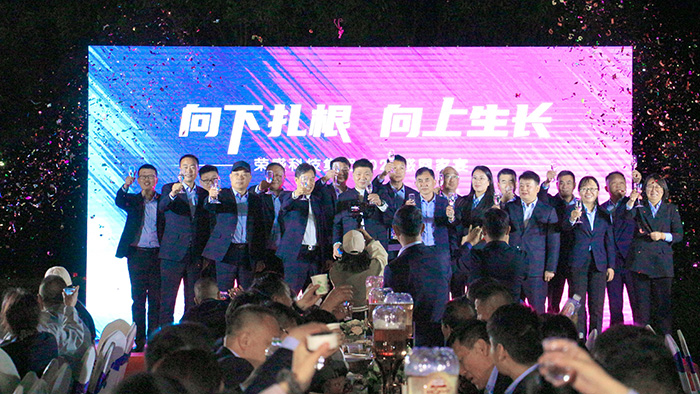 隨著一陣陣歡呼聲,家宴正式拉開序幕,董事長楚科奇及集團管理層共同登臺祝酒,為這個美好的歡聚時刻,與所有家人舉杯慶祝。現場華燈璀璨,笙歌高揚,家人滿座,笑語滿堂。