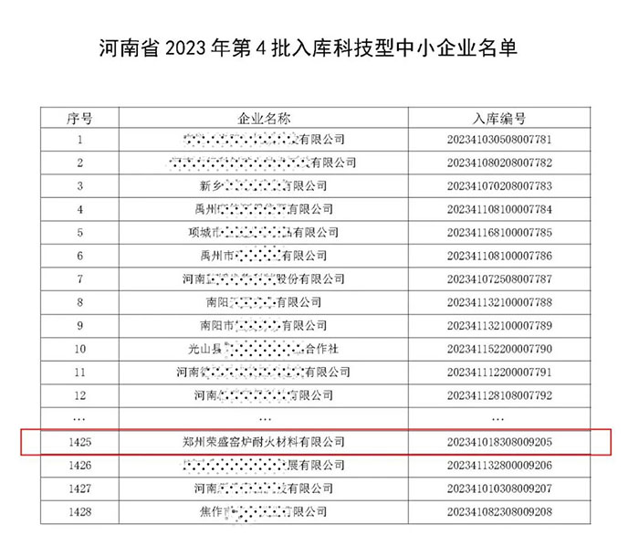 喜訊!榮盛耐材成功入庫(kù)「科技型中小企業(yè)」