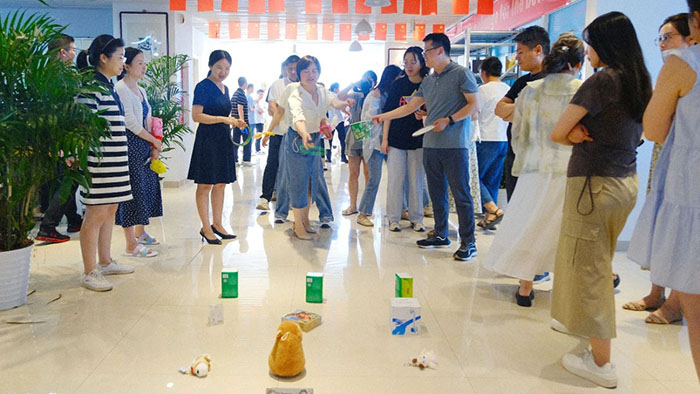 最后的「集體套圈」游戲里,面對(duì)游戲區(qū)的各類(lèi)精美禮品,大家紛紛上陣,身體前傾、手臂輕揮,套圈在空中劃出弧線。有人精準(zhǔn)命中,引來(lái)一片喝彩;有人與獎(jiǎng)品失之交臂,也毫不氣餒,笑著準(zhǔn)備下一次投擲?,F(xiàn)場(chǎng)歡聲笑語(yǔ)不斷,輕松愉快的氛圍中,大家盡情享受游戲帶來(lái)的驚喜與歡樂(lè)。