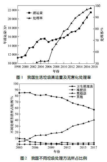 城市垃圾的無害化、減容化已成為政府和公眾非常關心的問題。隨著我國經濟的迅速發展和人口不斷向城市集中,城市化進程加快且數量和規模不斷擴大,城市生活垃圾總量持續增多。近十幾年來,我國城市垃圾無害化處理從無到有,無害化處理率也在逐年增長(見圖1)。