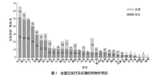 垃圾處理的主流技術,在經濟比較發達的城市,垃圾焚燒廠較多,垃圾焚燒發電在我國進入了快速發展階段。如圖3 所示,截至2019 年2 月,我國(不包含港、澳、臺地區)在運行的生活垃圾焚燒廠數量已達到418座,還有167 座正在建設,其中,機械爐排爐占80%以上。