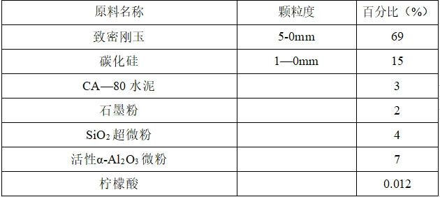 要求高鋁礬土熟料雜質含量低,燒結好(吸水率<4.5%)。顆粒組成為:8—2mm40%---60%,2---0.074mm30%---40%,黑色碳化硅小于100目,炭素材料可采用石墨或冶金焦。