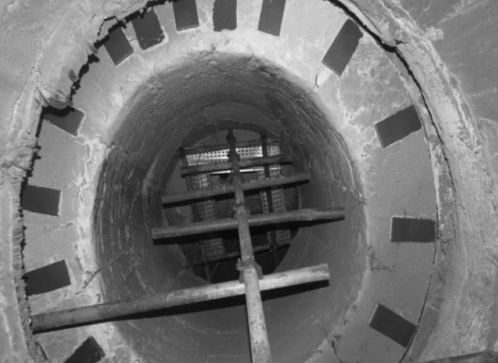 (3)原耐火材料由環(huán)形托架支撐,環(huán)形托架熱膨脹時受內(nèi)筒拘束向下變形,耐火材料得不到有效支撐,zui終脫落。