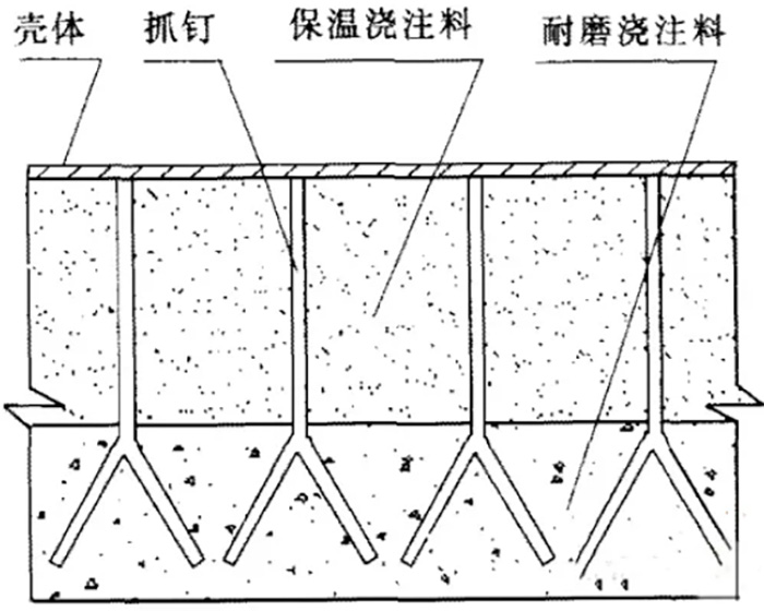 (3)耐磨澆注料+保溫澆注料型式