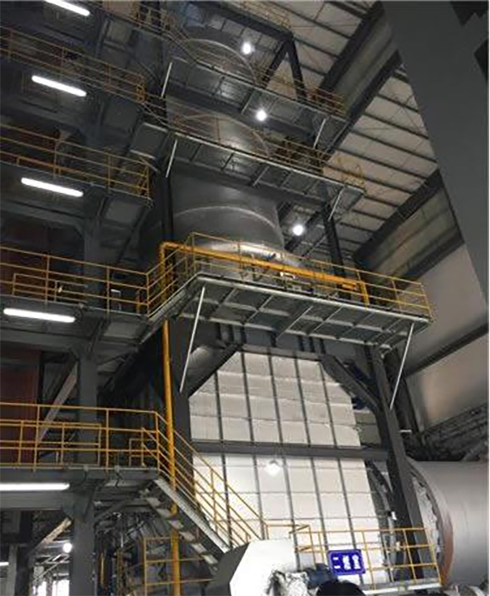 急冷塔使用耐酸澆注料或者耐酸膠泥,頂部往下約2米區(qū)域溫度較高可以采用25mm絕熱材料作為隔熱層,內(nèi)襯總厚度100mm即可。